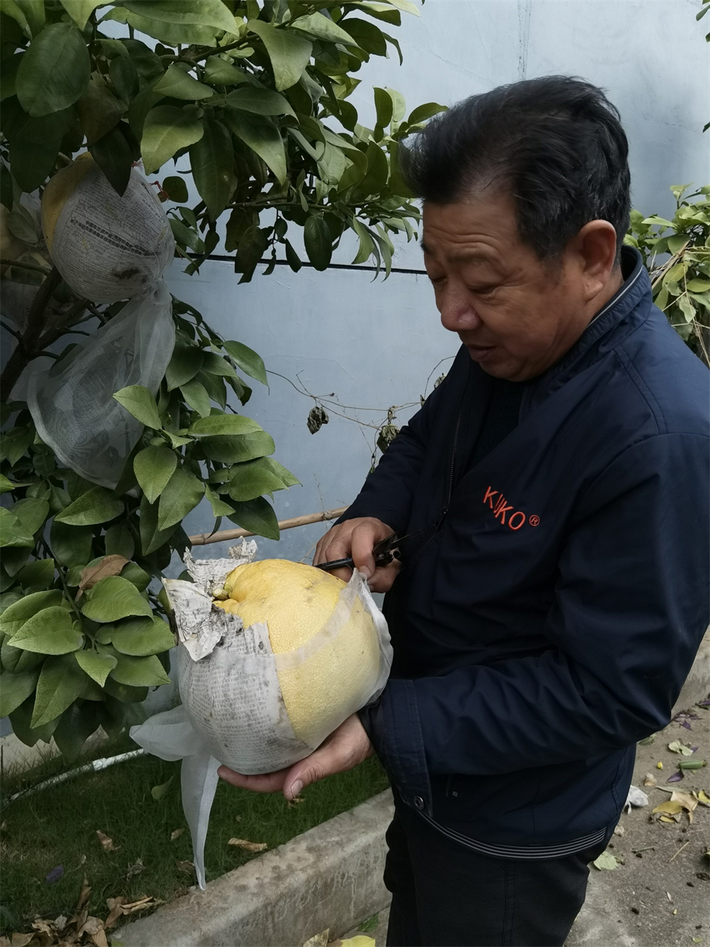 每年的四月柚花香四溢,五月姚師傅就給所有小青柚套上保護袋,這樣果子就受到保護啦~